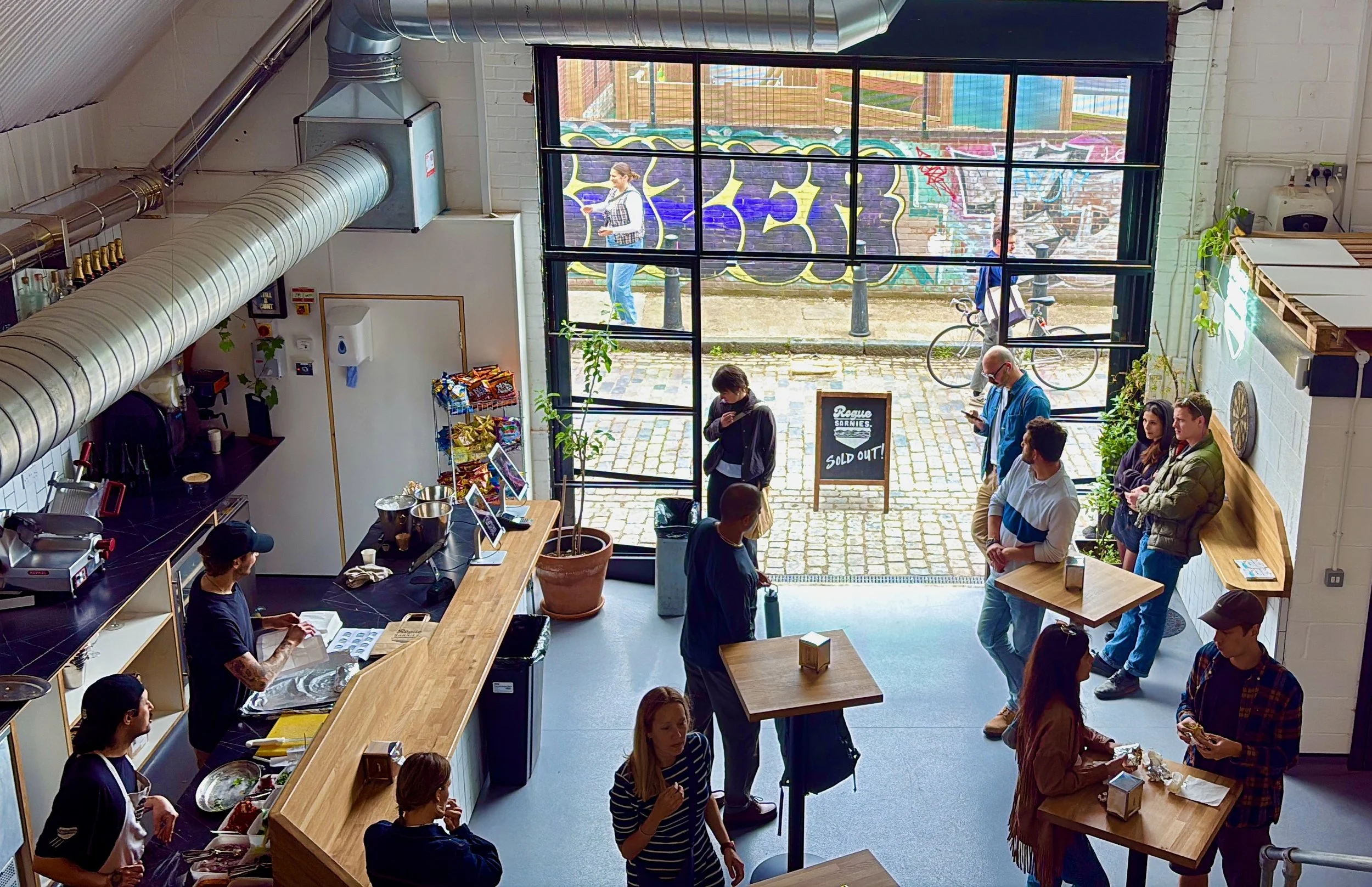 Perfect for bigger bashes, brand launches, weddings, rap battles or anything worth celebrating properly. You’ll get both floors, including an upstairs and downstairs bar and kitchen, outdoor tables, standing and seated spots, and the full Rogue team looking after you. Music up, drinks flowing, sarnies everywhere. Let’s go.